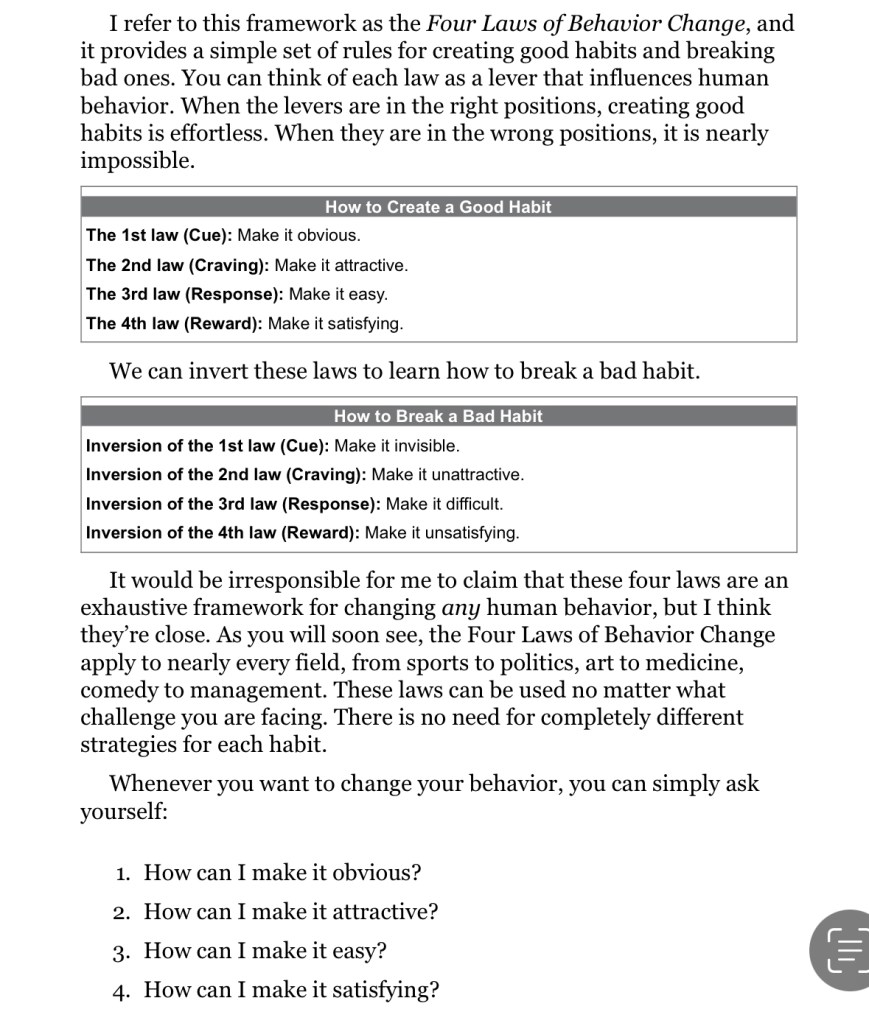 So, how do we build habits? Well, James Clear puts it forward very simply: In four simple steps he calls Four Laws of Behavior Change.